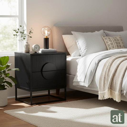 ALTALIA DECO HOME Buró para Recámara Moderno - Mesa de Noche 3 Cajones Almacenamiento - Buro Minimalista Lambrín - 60x48x40cm - Buro Madera MDF - Buros Recámara Mesita Noche Auxiliar (Negro 3 Cajones)