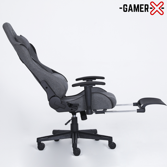GAMER X Silla Gamer Ergonómica de Tela con Reposapiés (Gris)
