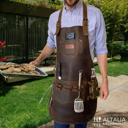 Mandil parrillero hombre Delantal de cuero piel genuina para carne asada