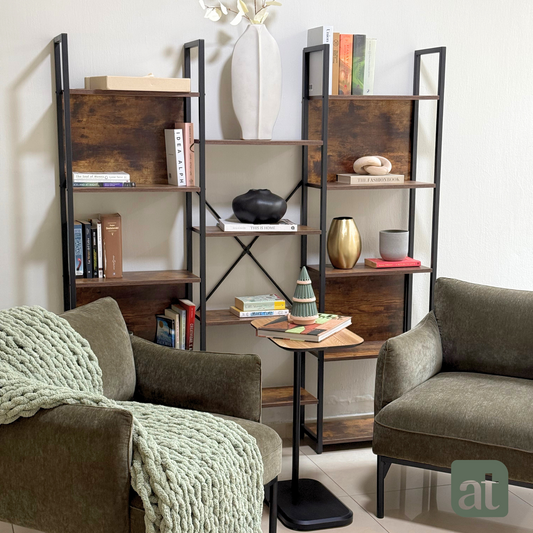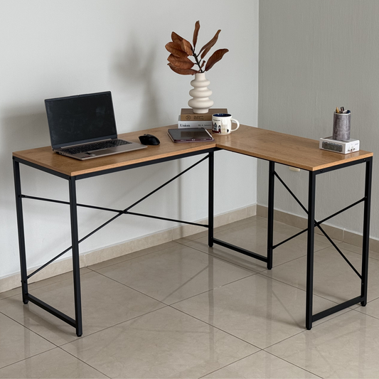 Escritorio en L Café Claro + Estantería con 4 niveles Café Claro