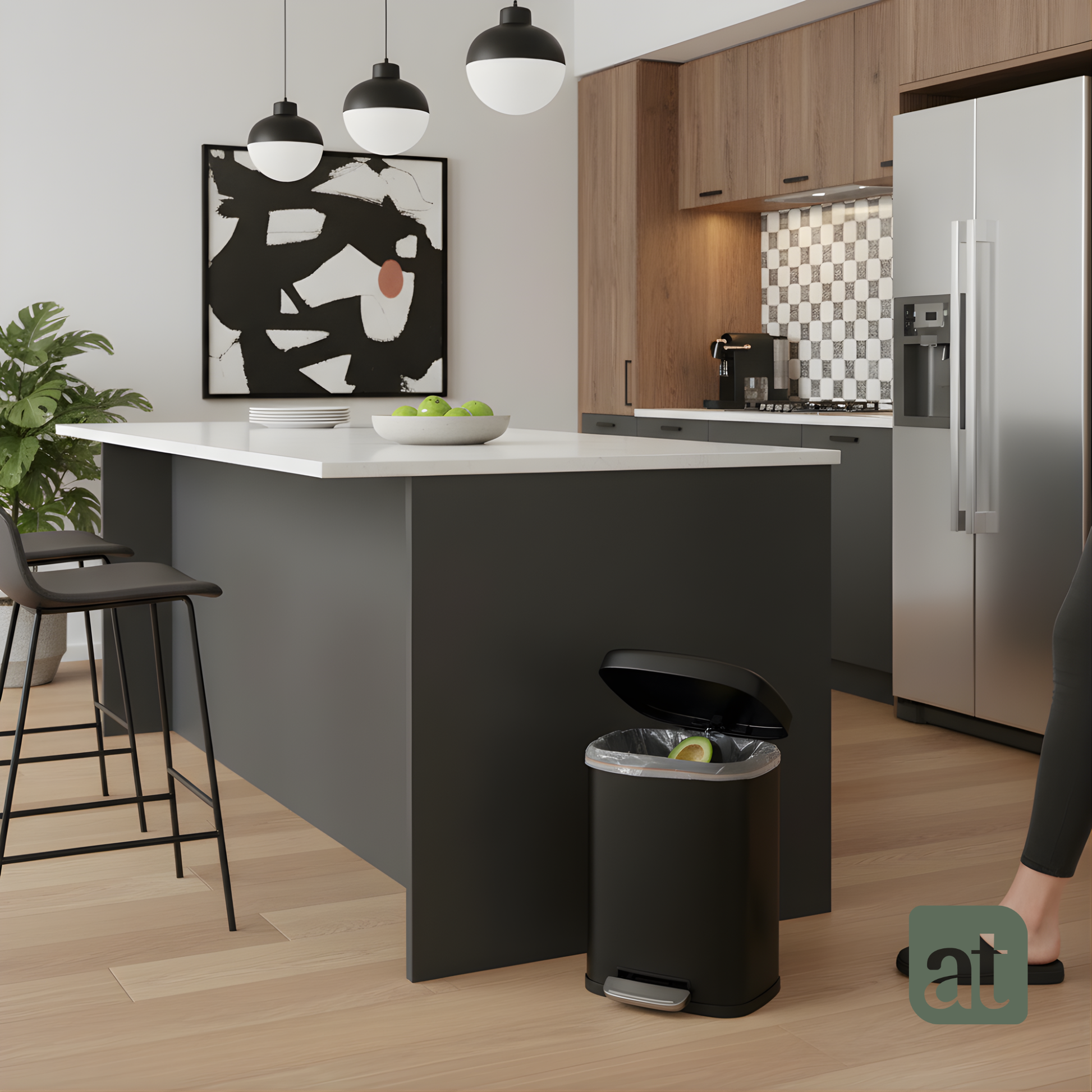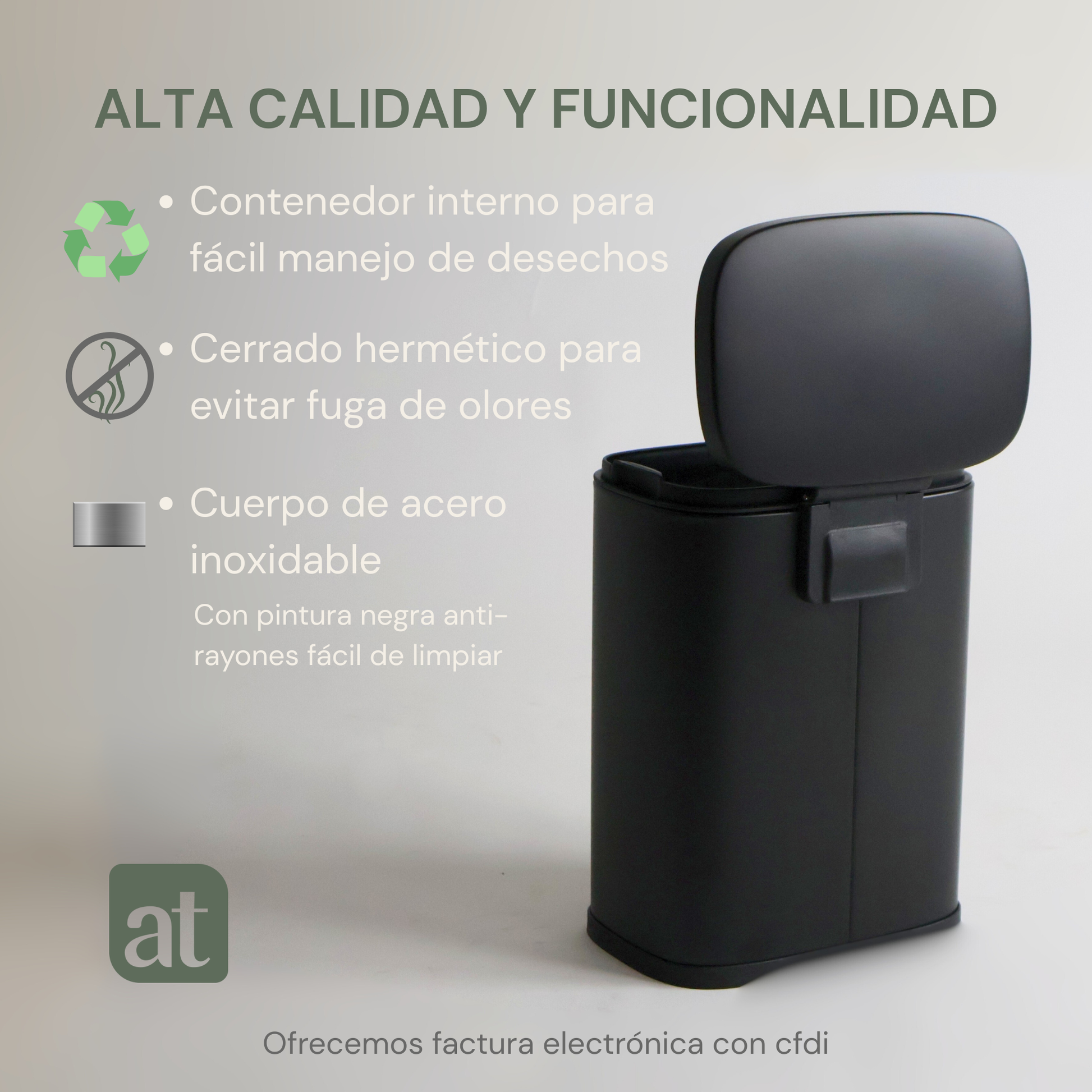 Bote de basura de acero inoxidable negro 5 y 12 Litros con pedal y tapa