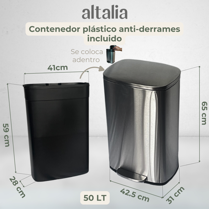 Bote de basura grande de acero inoxidable 30 y 50 Litros con pedal y tapa