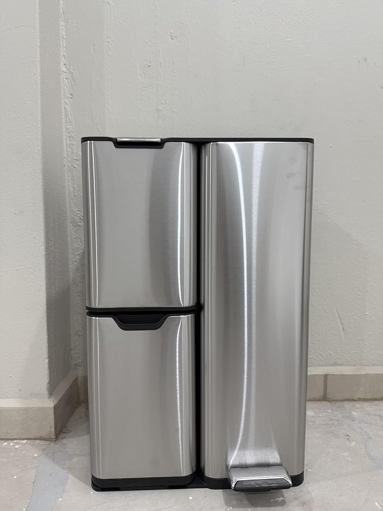 Me gustó mucho! Me llegó muy rápido y me gustó mucho la funcionalidad, tiene espacio para orgánicos, reciclaje y basura general; me gusta mucho que sella bien y así no va a salir el olor. Estaba buscando un bote para almacenar toda mi basura y este me va a funcionar perfecto!