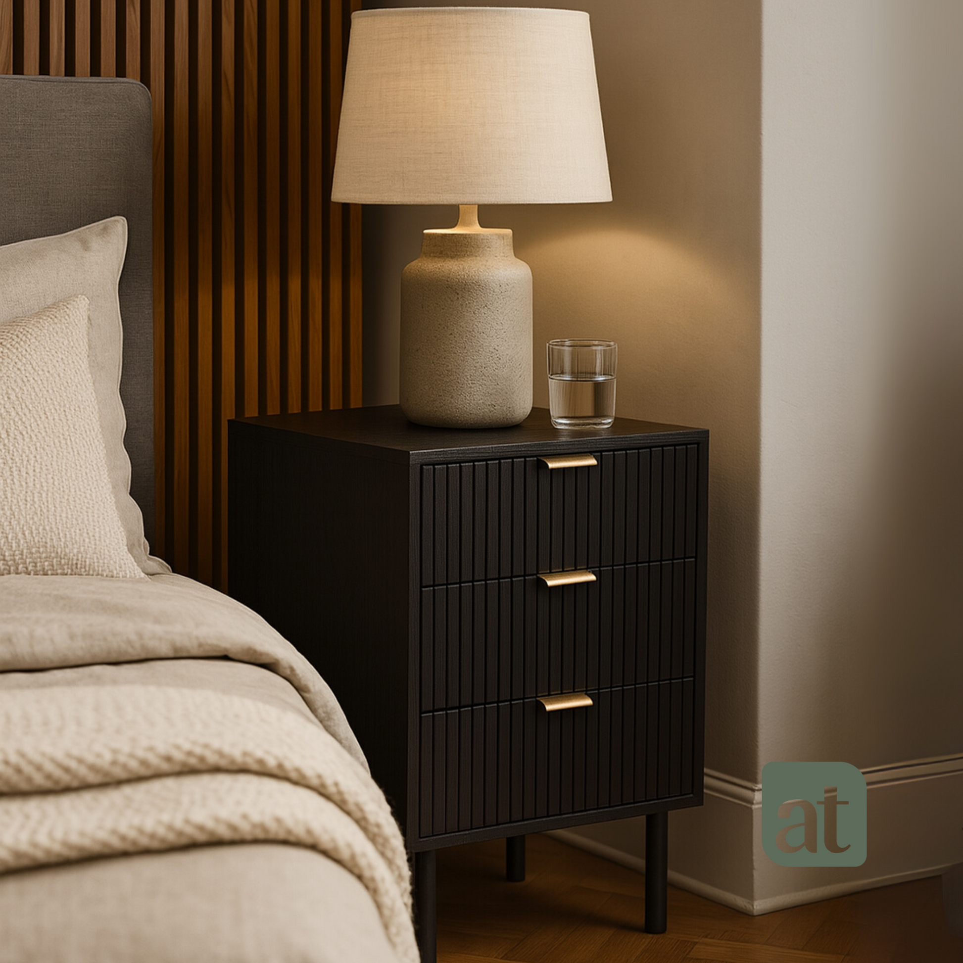 Buró 3 cajones para recámara minimalista - negro