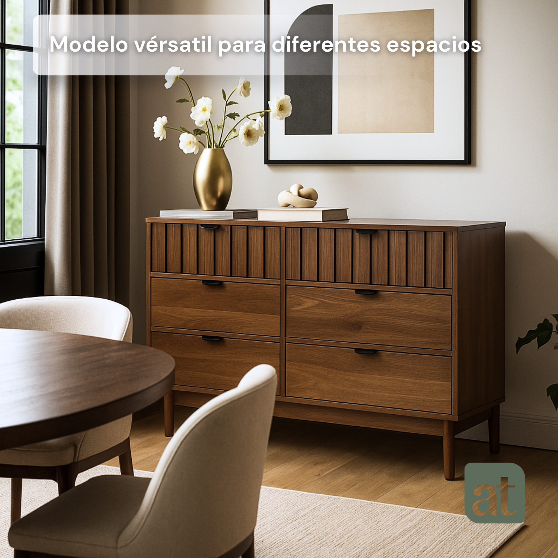 Hecha de materiales robustos, la credenza garantiza resistencia y longevidad. Invierta en un mueble que soporta el uso diario mientras mantiene su elegancia intemporal. Confíe en que este recibidor de entrada mantendrá su valor y funcionalidad a lo largo del tiempo.