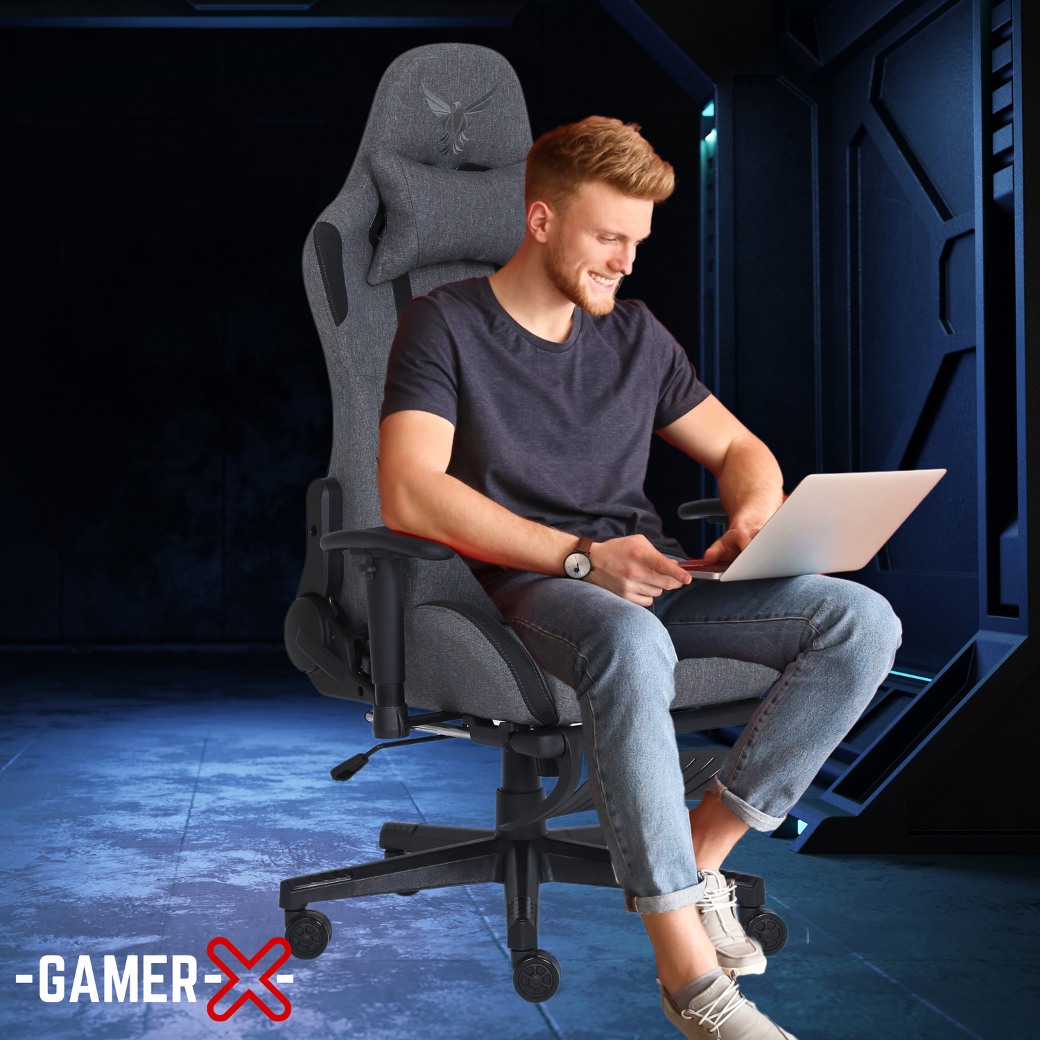 GAMER X Silla Gamer Ergonómica de Tela con Reposapiés (Marino)