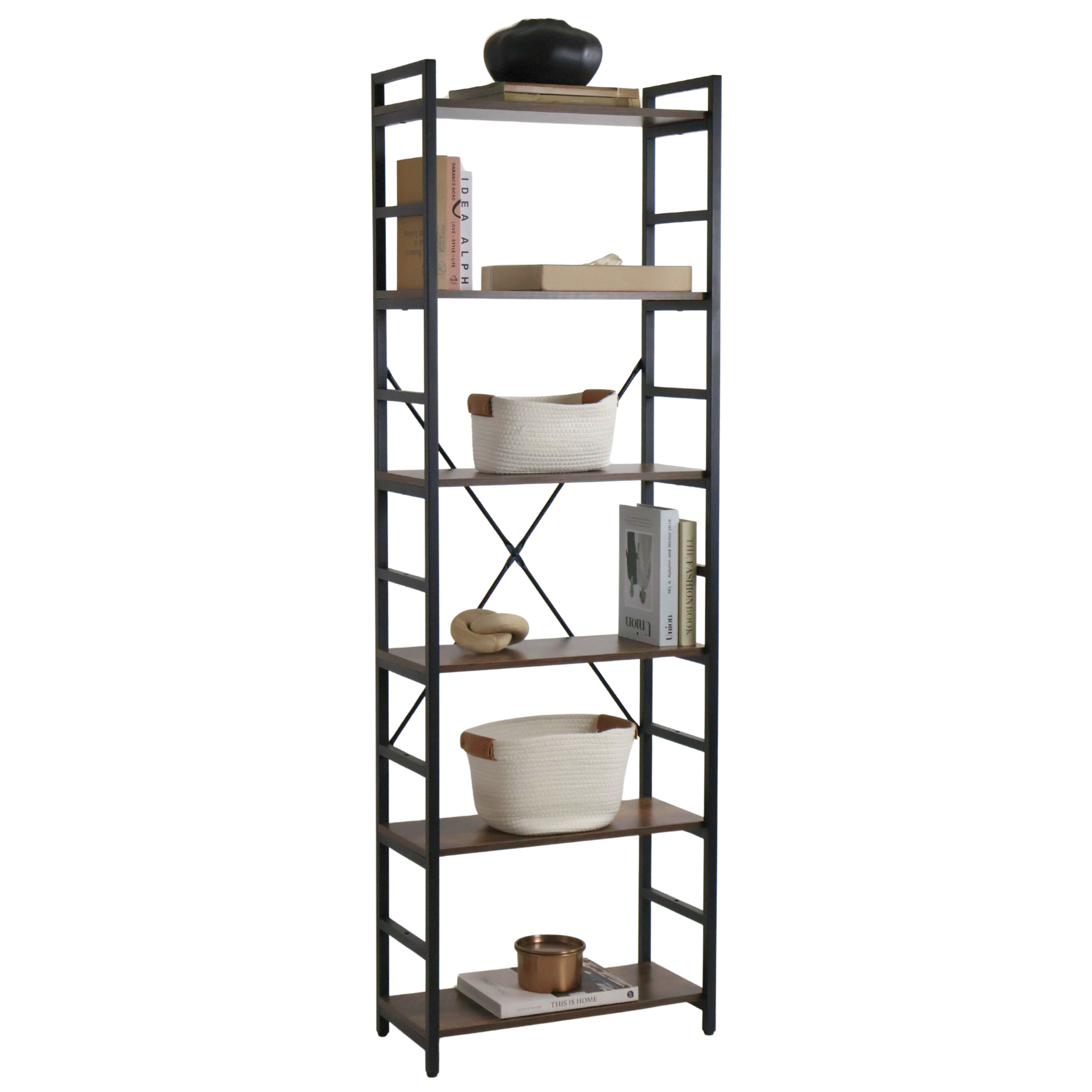 Librero organizador con 6 estantes de madera alto color café oscuro