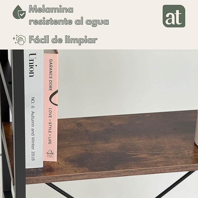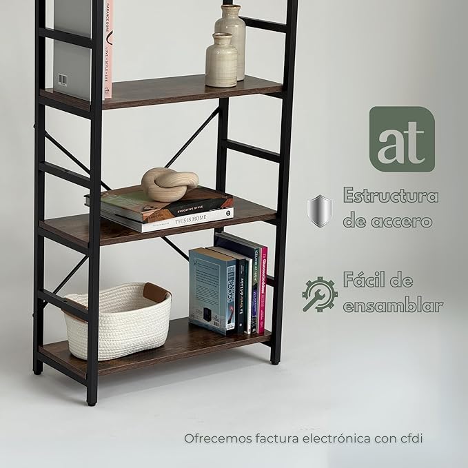 Instalación rápida y sencillaOlvídate de los complicados montajes; con instrucciones claras y herramientas incluidas, este librero de madera y metal se ensambla fácilmente, permitiéndote acomodar todo en cuestión de minutos; disfruta de una experiencia de compra sin estrés que te dejará tiempo para lo que realmente importa, dejando tu ambiente limpio y organizado, listo para inspirar cada día.